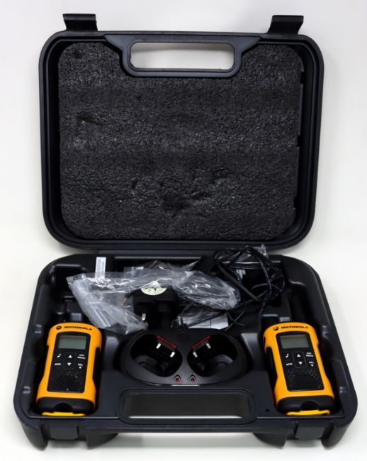 A pre-owned Motorola TLKR T80 Extreme Walkie Talkie Twin Pack.