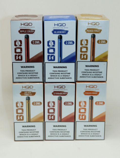 Six boxes of ten HQD Super Pro Disposable Vapes in assorted flavors (2.0ML nicotine, 600 puffs. Manufacture date 02/22) (Over 18's only).