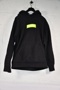 A pre-owned Supreme Lime Green Box Logo Hoodie in Black, Size Large.