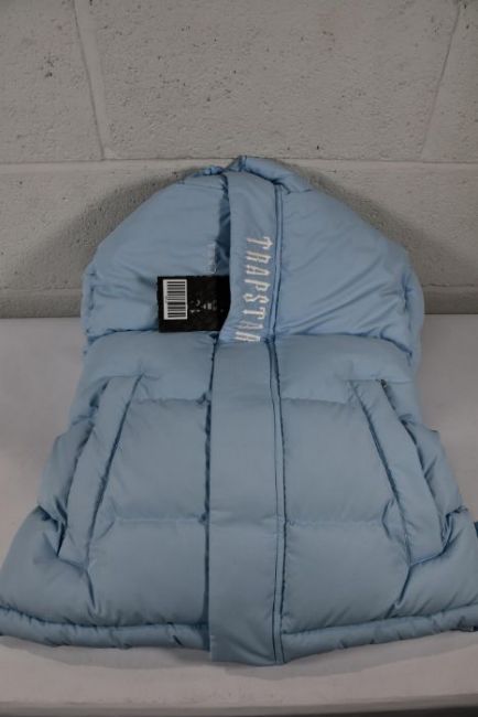 An as new Trapstar Decoded 2022 Hooded Puffer - Ice Blue (L).