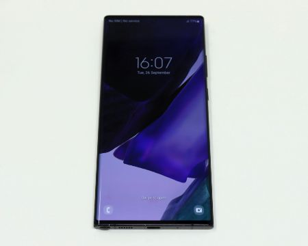 A pre-owned Samsung Galaxy Note20 Ultra 5G (SM-N986B) 256GB in Mystic Black (Google account clear. Grade F - Screen burn visable when displaying light colours. Sold as seen.) (Checkmend report flags 'The device has been reported lost or stolen in the past to a phone network.' Checkmend report ID: CM19302914-4DE7F).