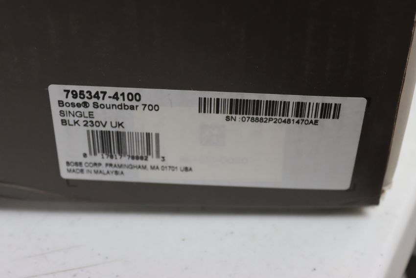 A boxed as new Bose Smart Soundbar 700 (EAN: 017817788823) (Box opened, damage to box and some inner packaging. No damage to unit).