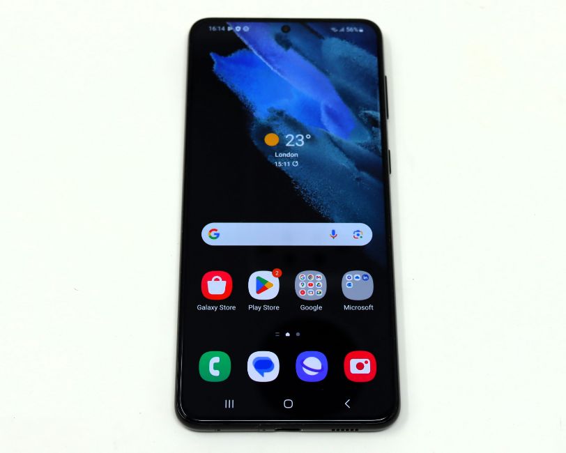 A pre-owned Samsung Galaxy S21 Plus 5G (SM-G996B/DS) 128GB Phantom Black (Google account clear. Grade B) (Checkmend report ID: CM19303054-16957).