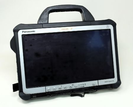 A pre-owned Panasonic Toughbook CF-D1N Xentry Pad (P/N: CF-D1NW200TZ) (HDD removed. No power adaptor included. Untested, sold as seen for parts only).