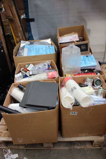 Six boxes of assorted miscellaneous items to include household, stationary and related items.