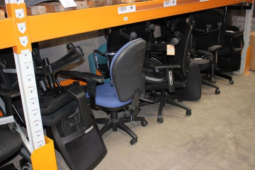 A large quantity of office clearance computer chairs in assorted styles and colours