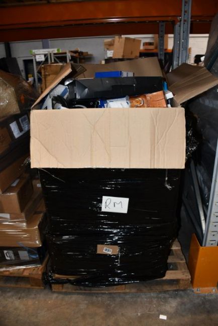 A pallet of returns to include HDMI cables, computer speakers and LED ring lights (Viewing advised).