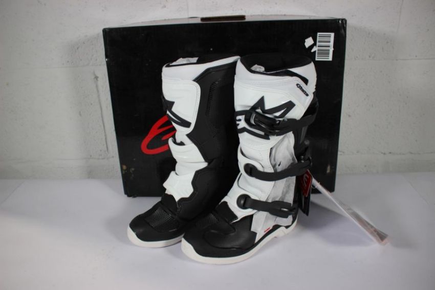 A pair of as new Alpinestars youth motorcycle boots in black and white (Euro 34).