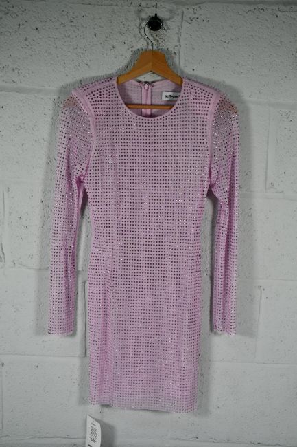 An as new Self-Portrait Embellished Jersey Lilac Hot Fix Mini Dress (Size UK 8).