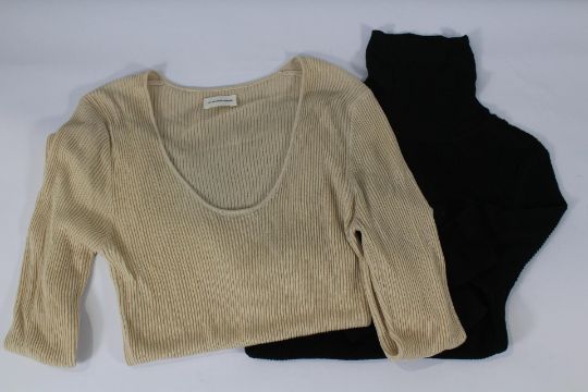 A By Malene Birger Rinah Ribbed Top - Natural and a Ronella Turtle Neck Top - Black, both pre-owned (S).