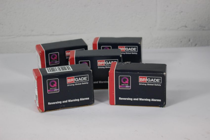 Five boxed as new Brigade white sound reversing and warning alarms.