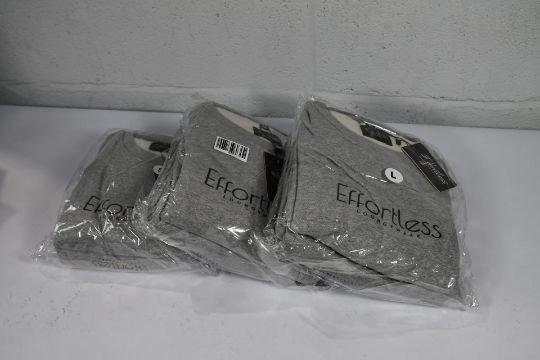 Three Effortless grey lounge sets (1 x S, 1 x M, 1 x L).