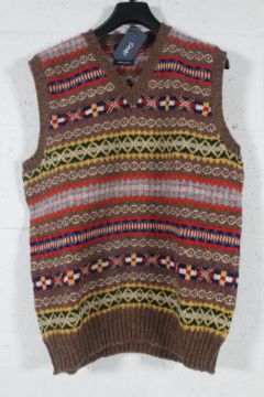 Men's Drake's Fair Isle Knit Vest - Olive (L).