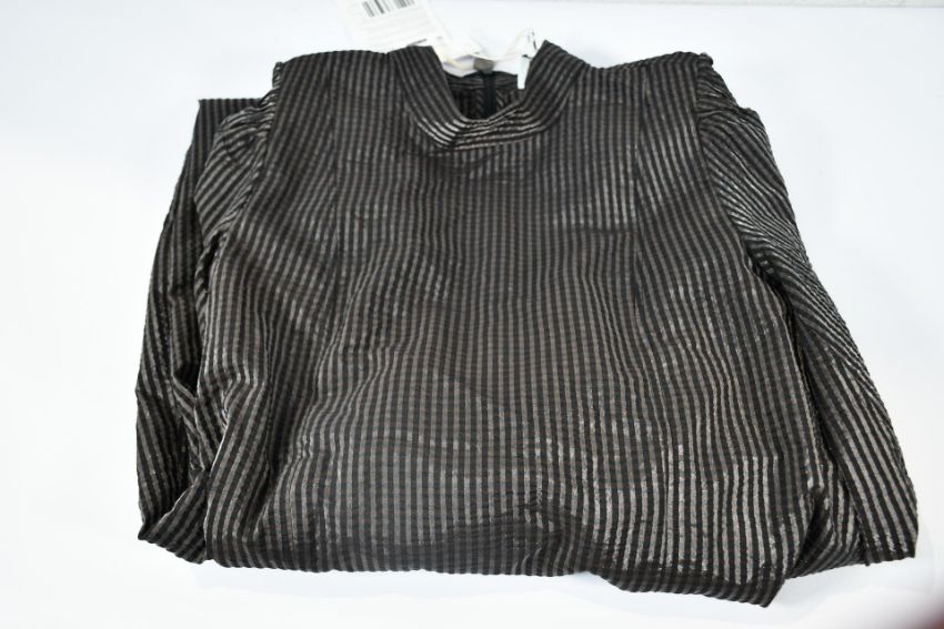 An as new Ganni Seersucker midi length high neck dress (Size 42).