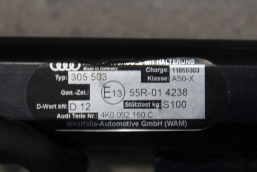 A pre-owned Audi Tow Bar with Electroinstallation, Swiveling Tow Hook.