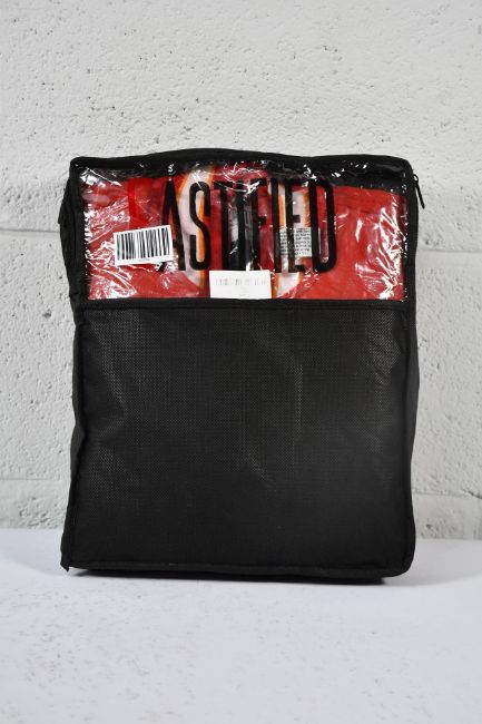 An Eastifield Michael Jackson Thriller Red M logo Varsity Letterman faux leather sleeves bomber jacket (Size L).
