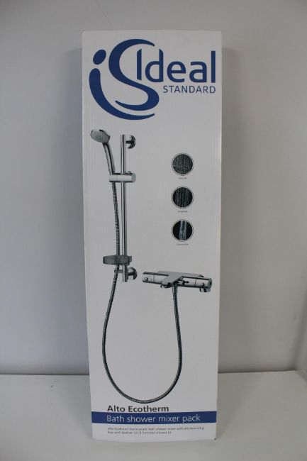 A boxed as new Ideal Standard Alto Ecotherm bath and shower mixer kit in chrome (A5636AA).