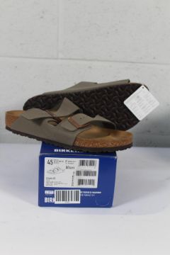 A pair of as new boxed Birkenstock Arizona BS Sandals in Stone, Size UK 10.5.
