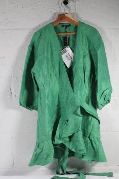 A Maje Rifeuille belted crossover dress in Vert (Green) (Size 36).