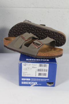 A pair of boxed as new Birkenstock Arizona BS Sandals in Stone, Size UK 8.