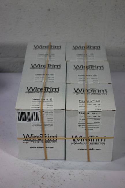 Six boxes of as new WireTrim FiberLine Heavy Duty 1/4" x 100FT (6mm x 30mm), 10 rolls per box.