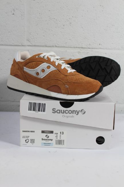 A pair of boxed as new Saucony Shadow 6000 Trainers in Light Brown, Size UK 12.