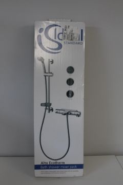 A boxed as new Ideal Standard Alto Ecotherm bath and shower mixer kit in chrome (A5636AA).
