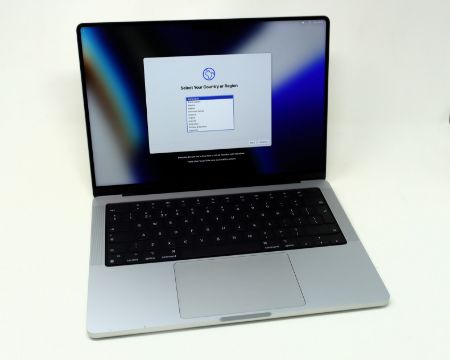 A pre-owned Apple MacBook Pro 14" (2021, M1 Pro) in Silver with 14-Core GPU, 8-Core CPU, 32GB RAM, 512GB SSD (Sold for parts only, remote management locked. Cosmetic grade A. Mag safe charger and box included) (M/N: A2442 P/N: Z15J00244 S/N: PCFPFM64NY).