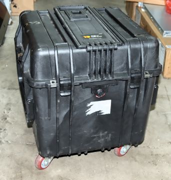 A pre-owned Peli 0340 Cube Case with steel caster wheels.