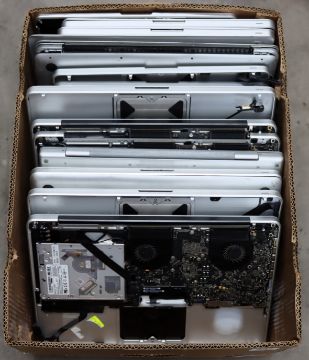 A quantity of Apple MacBook parts including screens, motherboards, keyboards (No storage or RAM) (Sold as seen for parts only).