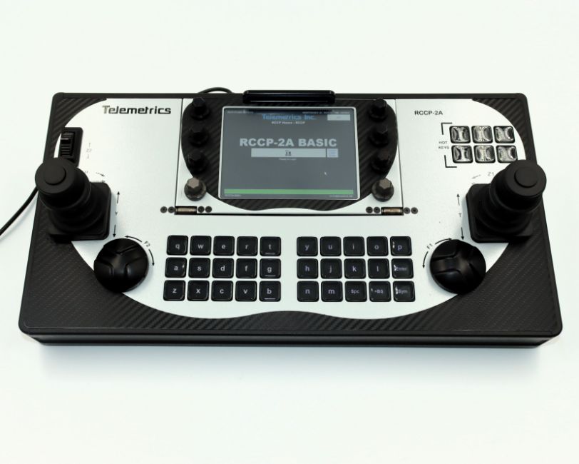 A boxed as new Telemetrics RCCP-2A Robotic Camera Control Panel with a IU-S5 Camera/Lens Interface Unit, 48V 280W Power Supply Pack and Camera Cables (RCCP-2A - UK power supply included, box opened. IU-S5 box sealed) (PLEASE NOTE THIS ITEM DOES NOT COME WITH ANY LOGIN INFORMATION OR LICENCES INCLUDED AND REGISTRATION STATUS IS UNKNOWN- PLEASE DO YOUR OWN DUE DILLIGENCE BEFORE BIDDING. SERIAL NUMBERS AVALIBLE ON REQUEST. SOLD AS SEEN).