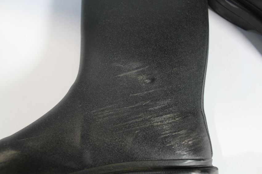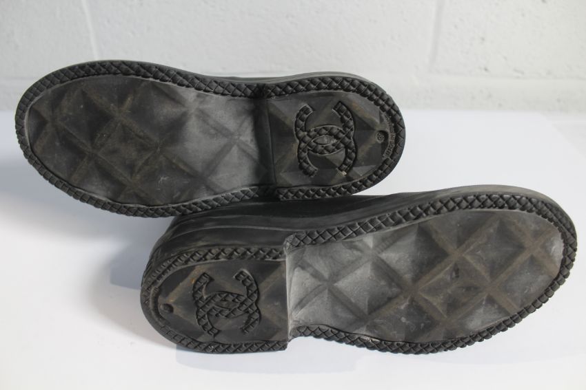 A pair of women's pre-owned Chanel Rubber Boots - Black (EU 39, some heavy scratches).