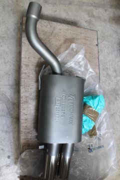 An as new TA Technix sport rear silencer 2x76mm fits BMW 5 Series Sedan, type E39 (EVOE39E276).