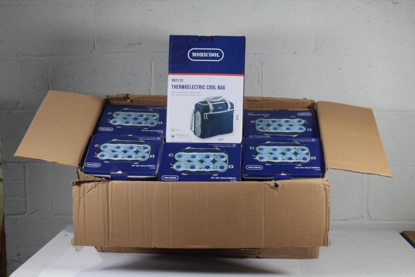 Six boxed as new Mobicool Thermoelectric Cool Bags, REF MB32 DC.