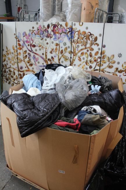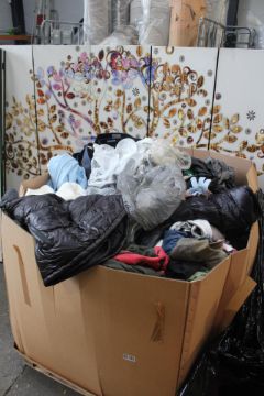 A pallet of pre-owned clothing and related items.