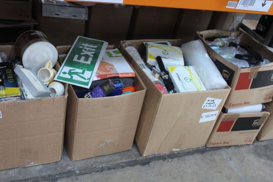 Seven boxes of miscellaneous items to include medical, food, homewares and related items.