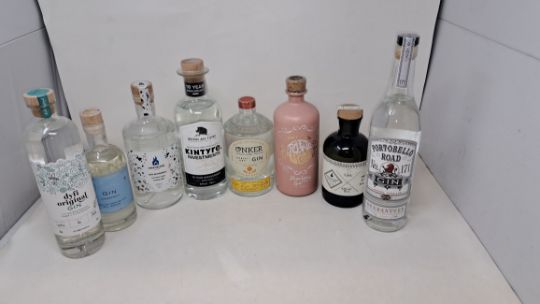 Eight bottles of assorted Gin to include Kintyre Investment, Conker Dorset Dry Gin and Dyfi Original Gin (Over 18s only).