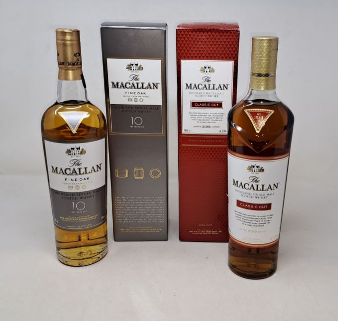 A The Macallan Classic Cut Highland Single Malt Whisky 2019 Limited Edition (700ml) and a The Macallan Fine Oak 10yr Highland Single Malt Scotch Whisky (700ml) (Over 18s only).