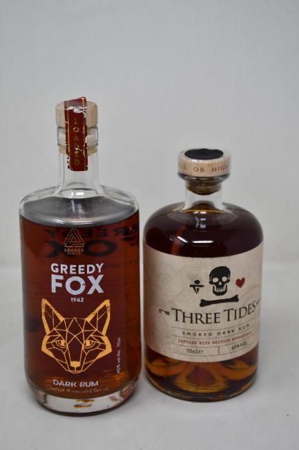 Greedy Fox Dark Rum (700ml) and Three Tides Smoked Dark Rum (700ml) (Over 18s only).