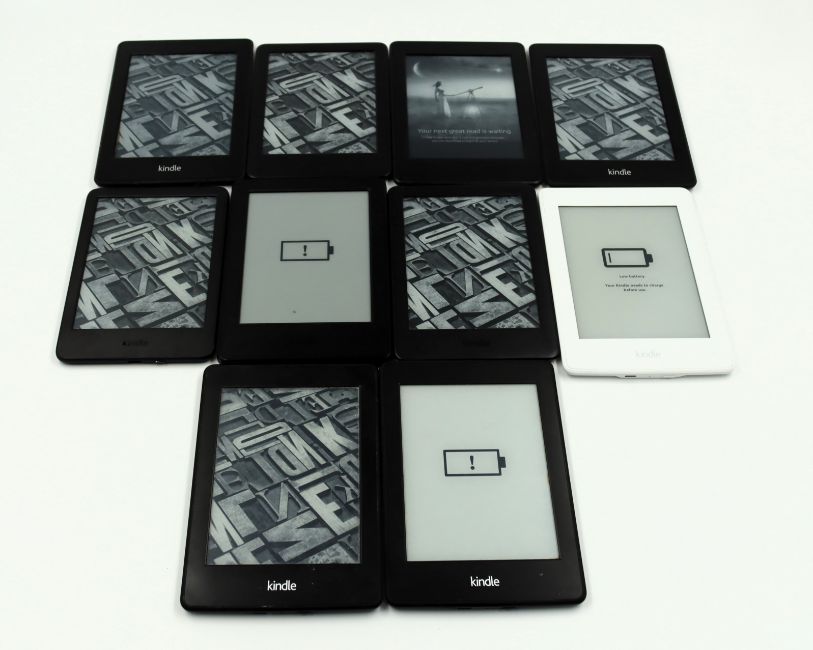 Ten pre-owned Amazon Kindle E-Readers (Assorted models and conditions).