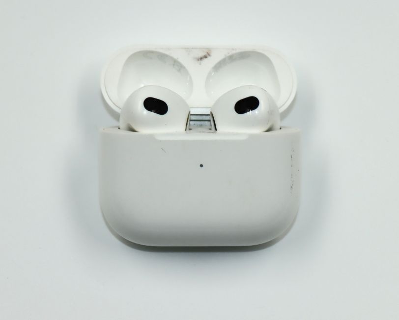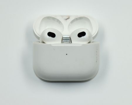 A pre-owned pair of Apple Airpods (3rd Gen/A2565+A2564 ) with MagSafe charging case (A2566) (Grade B/C).
