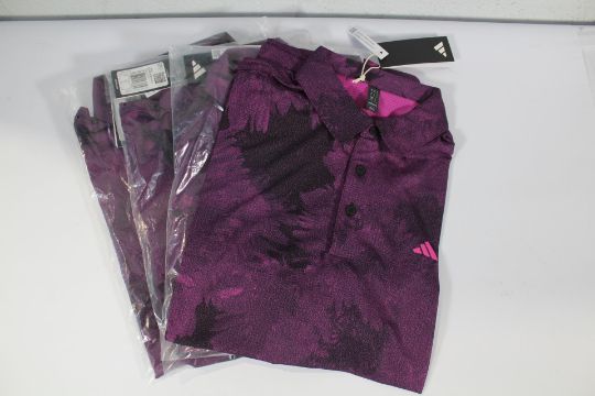 Four men's as new Adidas Flower Mesh Polo Shirts - Black/Lucid Fuschia (M x 2, L x 2).