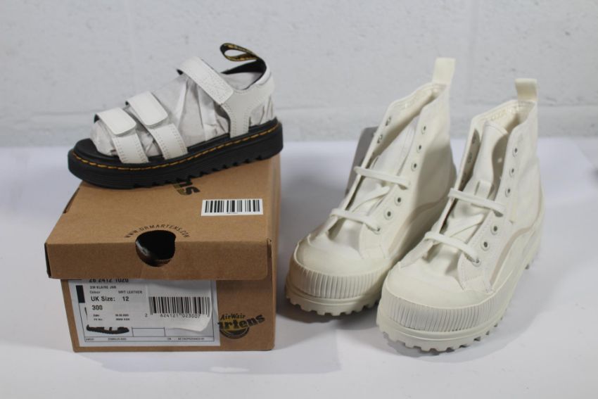 A pair of Dr Martin Junior Klaire white leather sandals (Size UK 12) and a pair of Superga hi-top canvas cream boots (Size UK 4) (Unboxed).