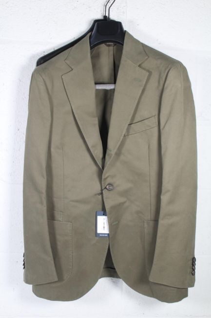 An as new Drakes Lovat Cotton Drill Tailored Jacket, Made in Italy, Size 40 (Measurements; Chest 53cm, Shoulder to Shoulder 48cm, Overarm Sleeve Length 64.5cm, Centre Back Length 76cm).
