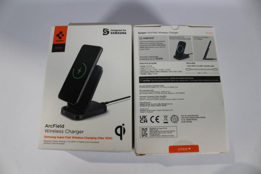 Two boxed as new Spigen PF2102 ArcField Wireless Chargers (Designed for Samsung).