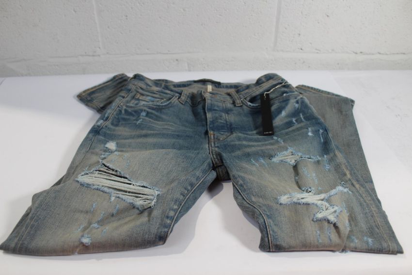 A pair of Amiri men's Thrasher Plus jeans in indigo clay (Size 31).
