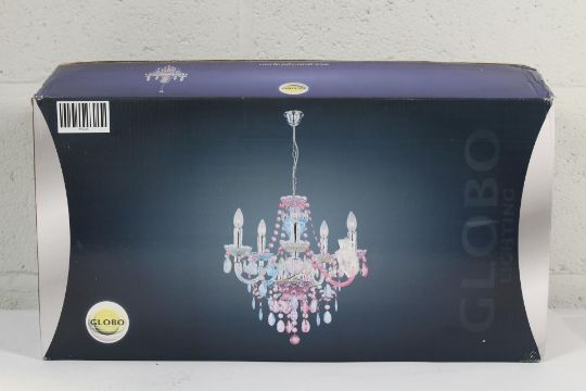 A boxed as new Globo Lighting Nevada Chandelier in Chrome/Colourful, REF: 63218-5.