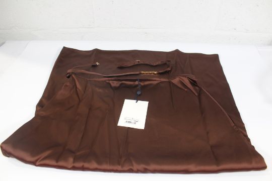 A Jacquemus dark brown La Jupe Notte side slit satin midi skirt (Size 38).