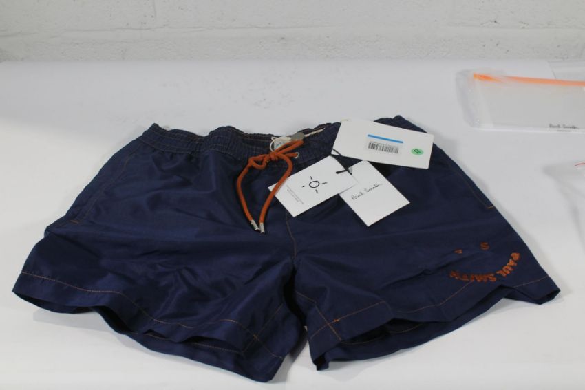 An as new pair of Paul Smith Short Happy Swimming Shorts in Blue/Brown, Size Medium.