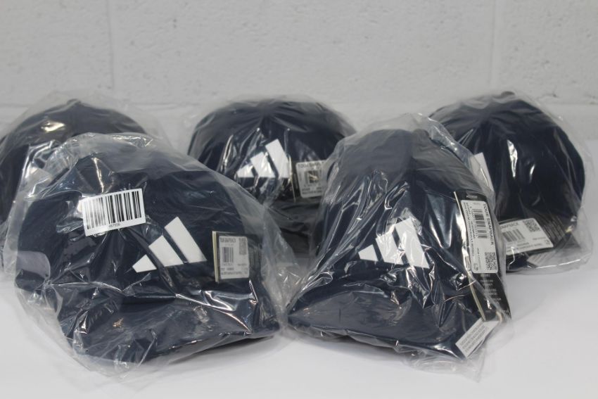 Five Adidas Tour snapback golf caps in navy and white logo (One size).